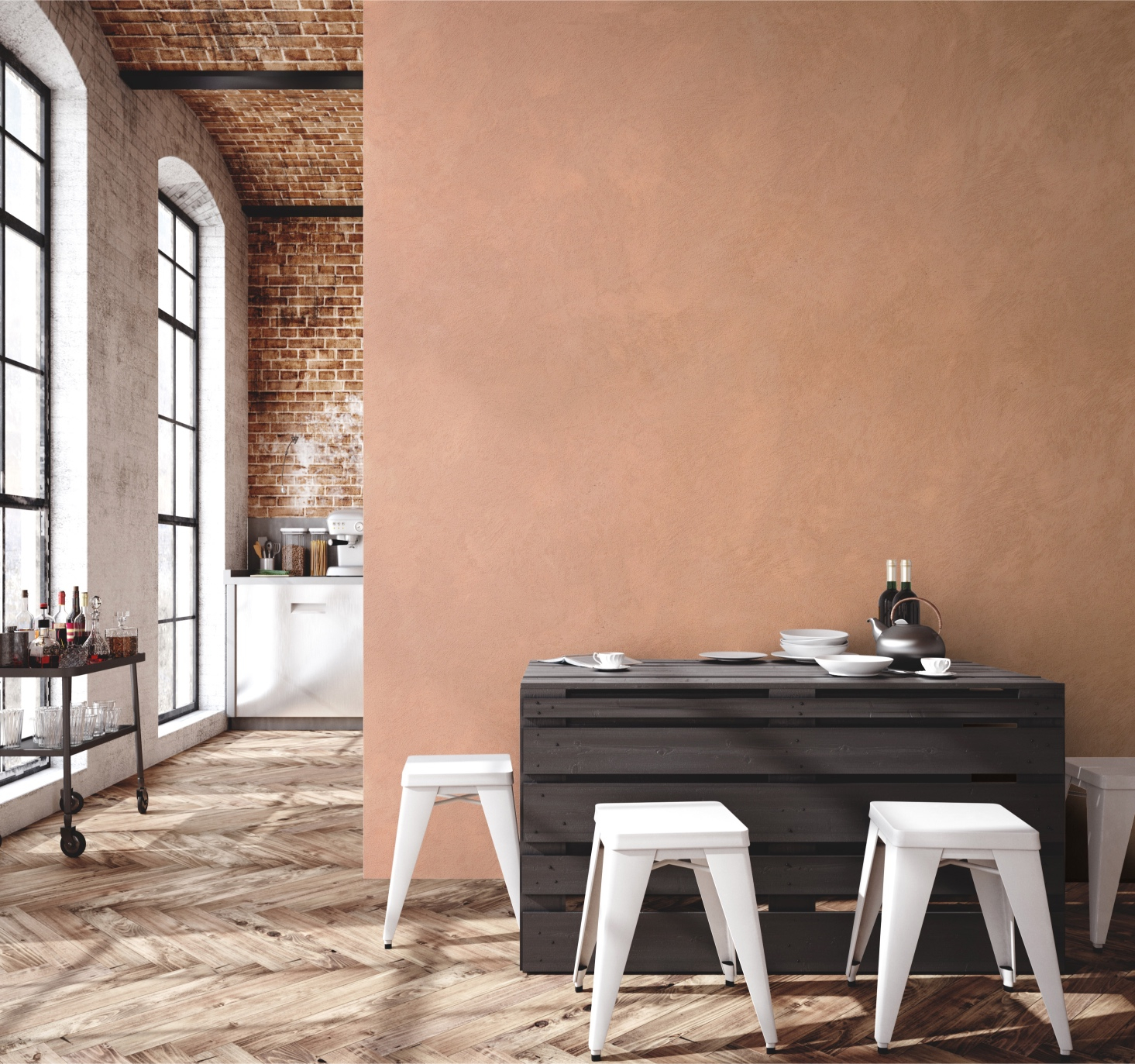 Vopseaua decorativǎ Sandé are un aspect nisipos, extrem de mat, cu "aer" minimalist.